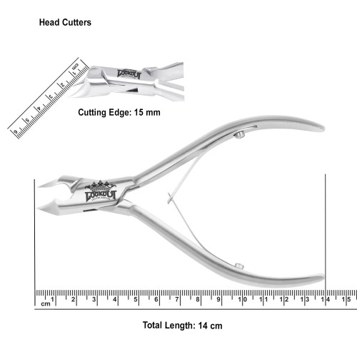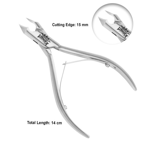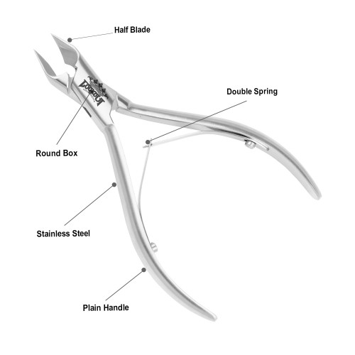 Plain Handle Half blade Round box Double Spring Length: 14 cm Cutting edge: 15 mmMaterial: Stainless steel