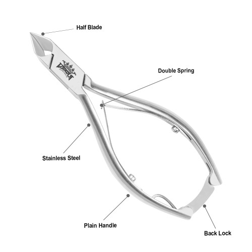 Plain Handle Half blade Back lock Double Spring Length: 14 cm Cutting edge: 16 mm Material: Stainless steel