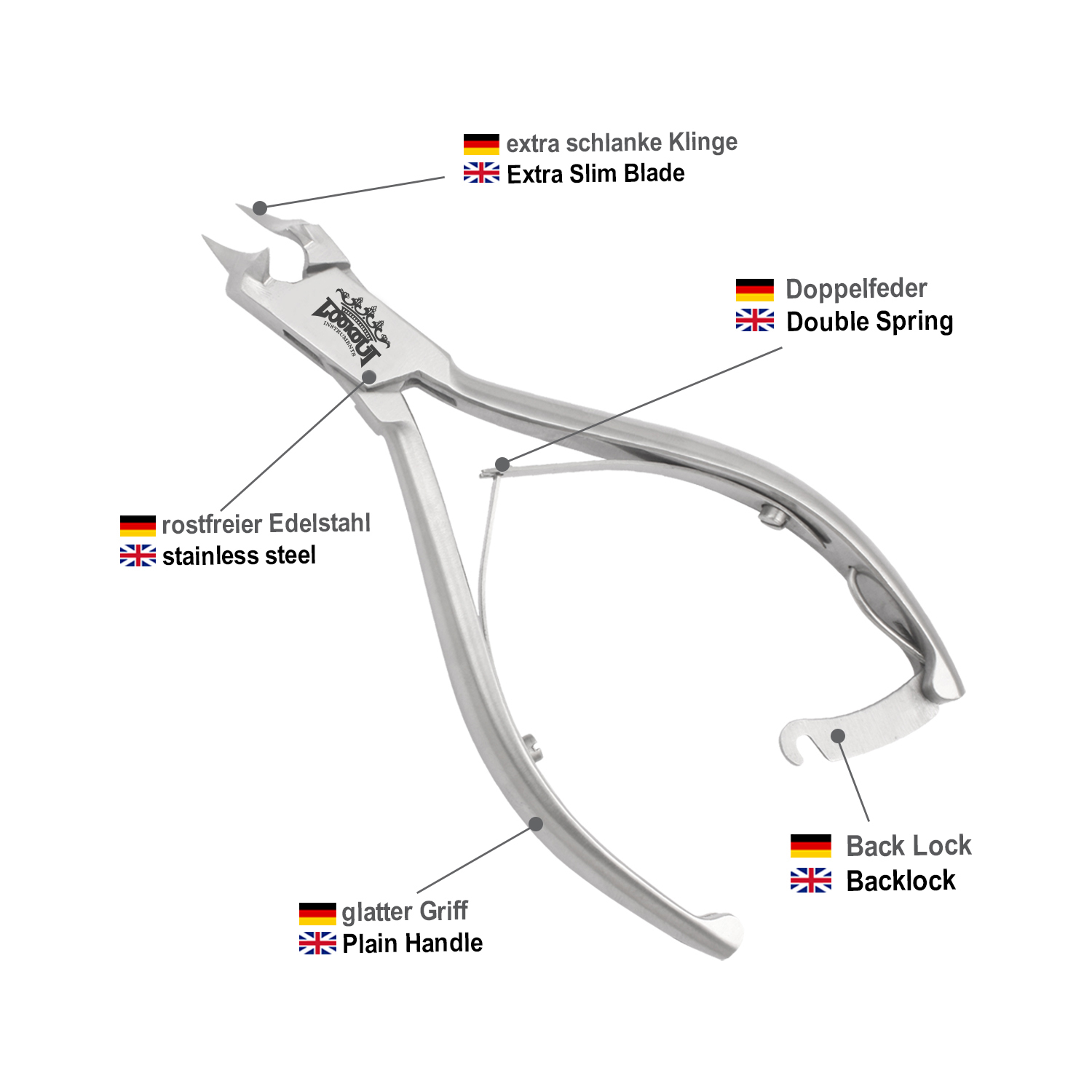 Plain Handle Extra slim blade Back lock Double Spring Length: 14 cm Cutting edge: 18 mm Material: Stainless steel