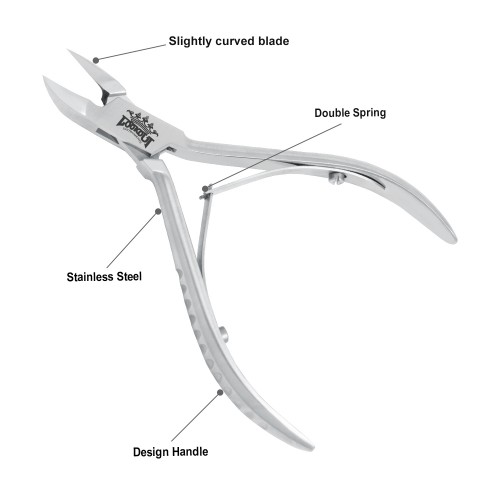 Design Handle Slightly curved blade Double Spring Length: 11.5 cm Cutting edge: 12 mm Material: Stainless steel