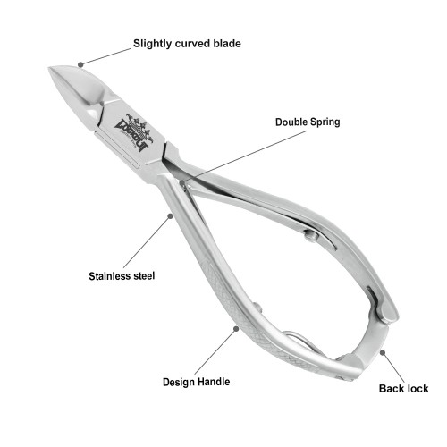 Design Handle Slightly curved blade Back lock Double Spring Length: 11.5 cm Cutting edge: 14 mm Material: Stainless steel
