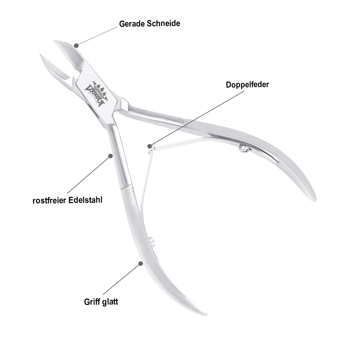 Plain Handle Straight cutter Double Spring Length: 13 cmCutting edge: 17 mm Material: Stainless steel